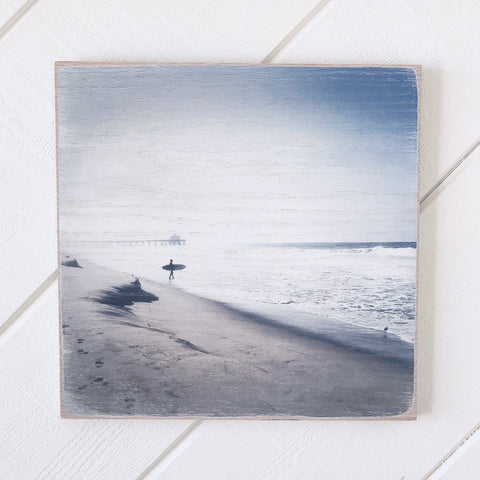 Wall Art is made from a kiln dried reclaimed FSC certified wood source and sustainable inks from vegetable dyes, with a bronzed hanger attached on the back for easy display. Created and photographed by local artisan Missy Patterson. Every piece tells a story of our beautiful southern California beaches.
